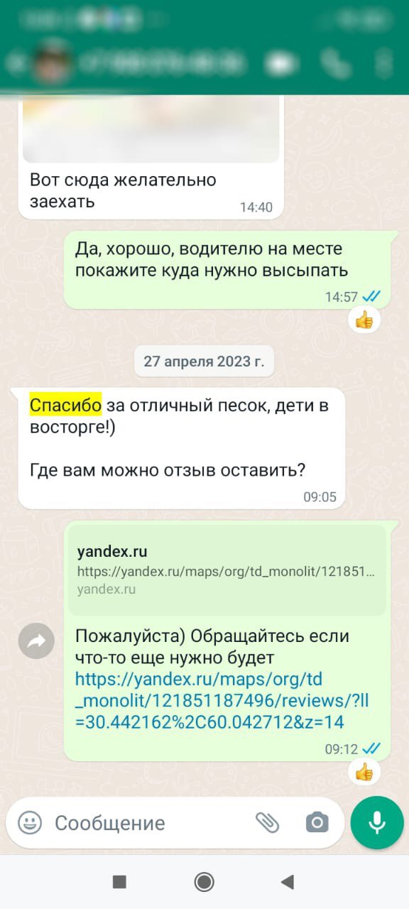 На прошлой неделе заказали у компании Велесарк 20 кубов речного песка для отделочных работ Заказ уже выполнен. Сроки соблюдены. Примите благодарность за оперативность.